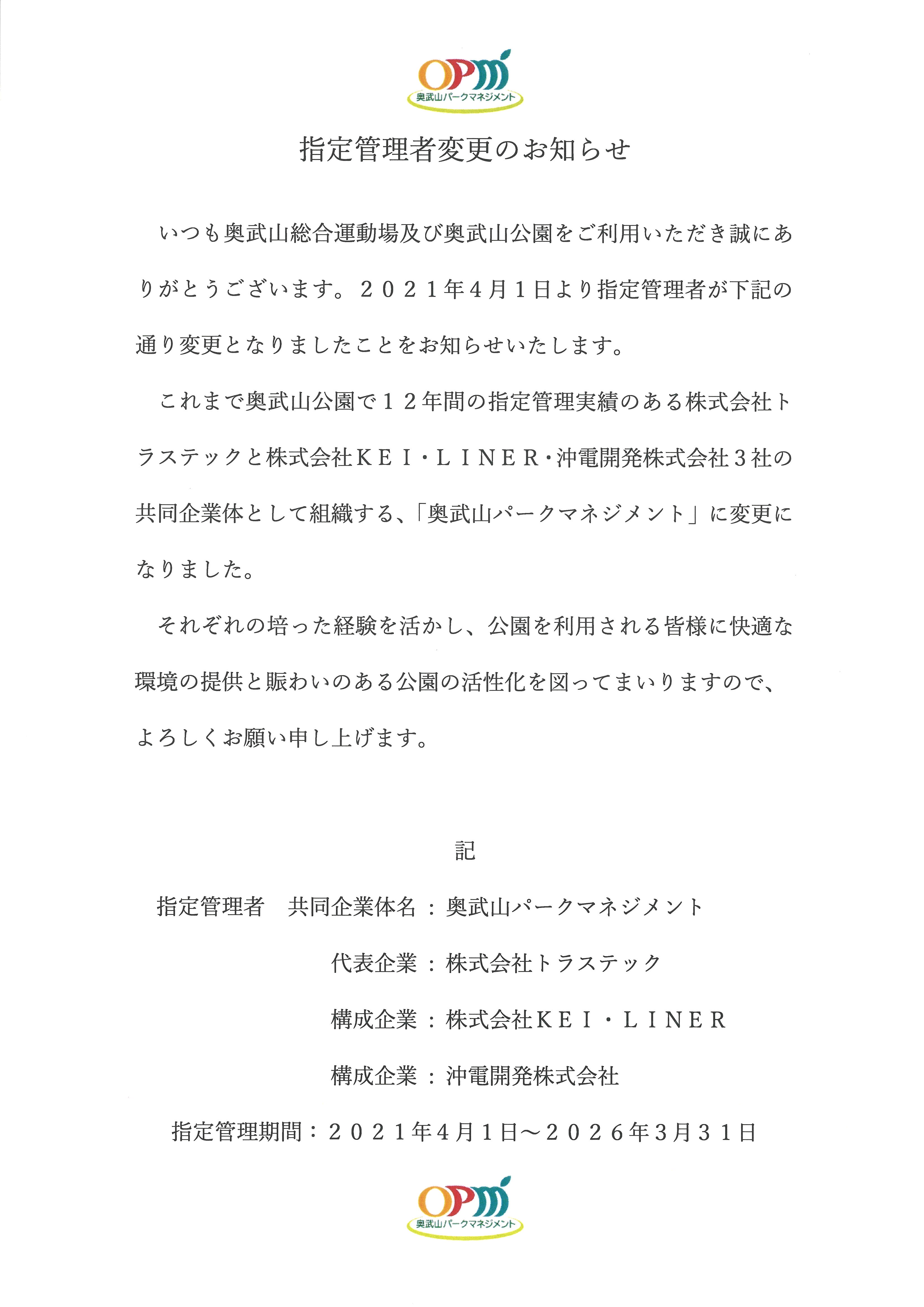 指定管理者変更のお知らせ