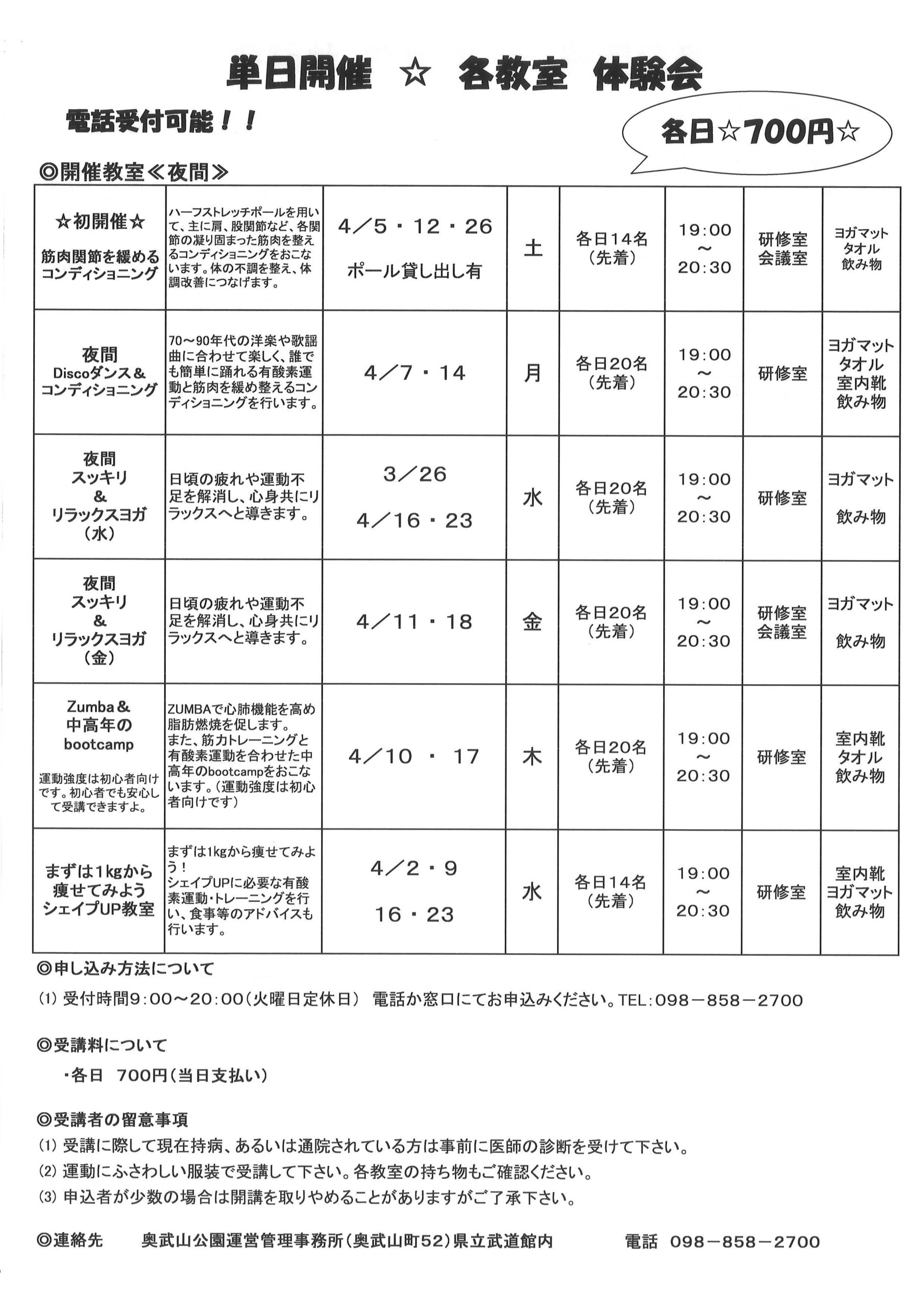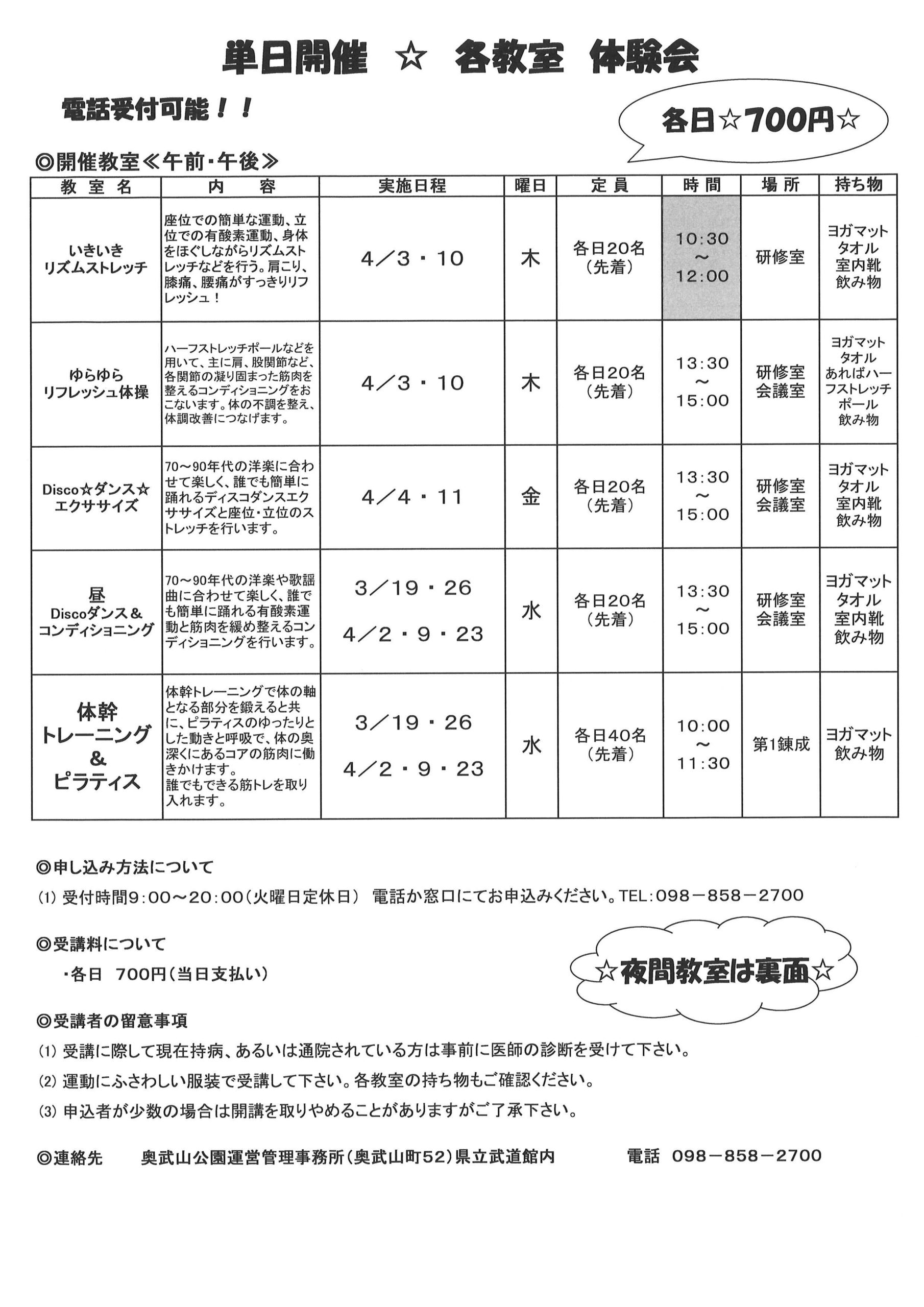 - 運動にふさわしい服装で受講して下さい。(運動着、運動靴等)