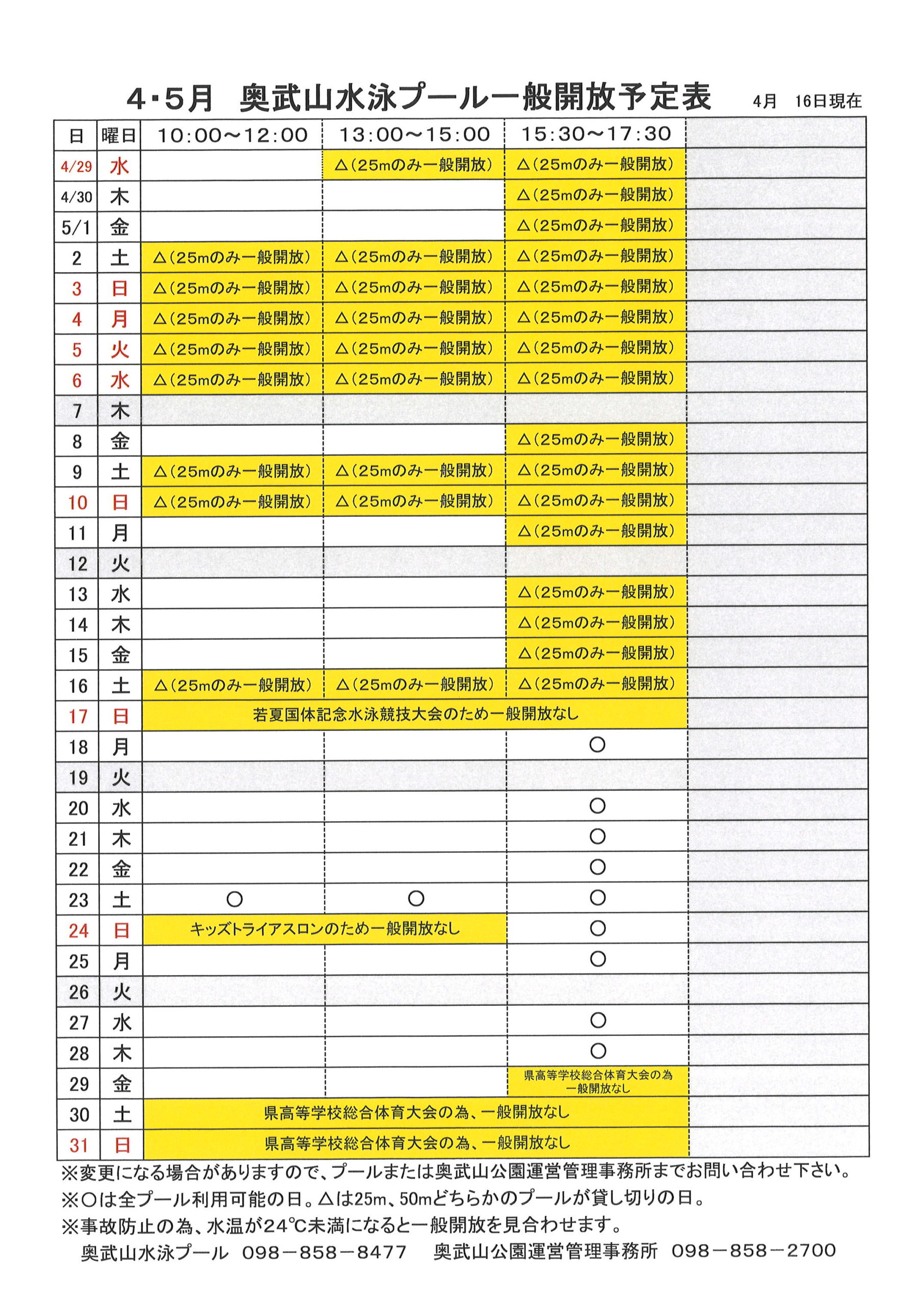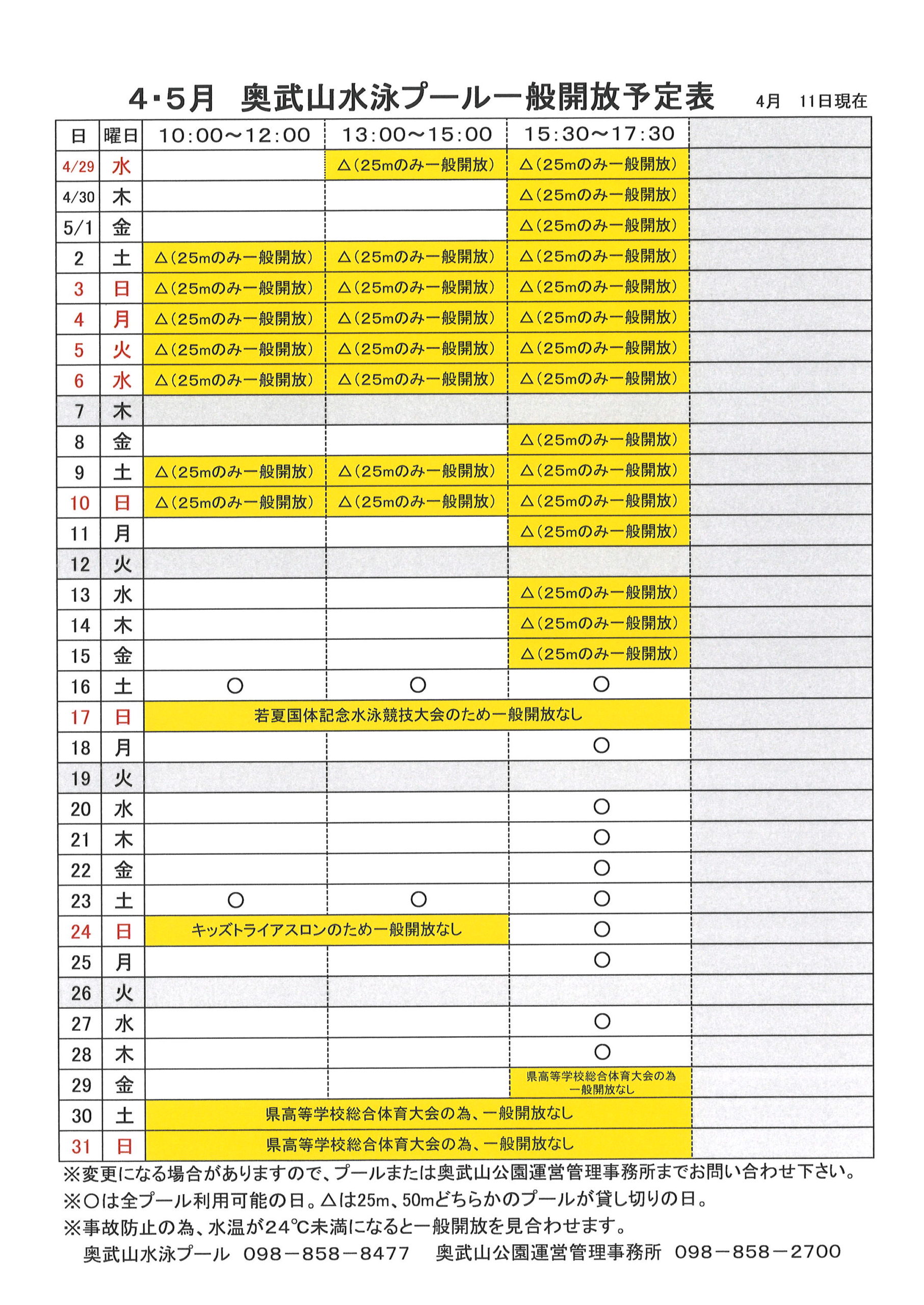※プール付近で雷が発生している場合、開放を一時中断します。