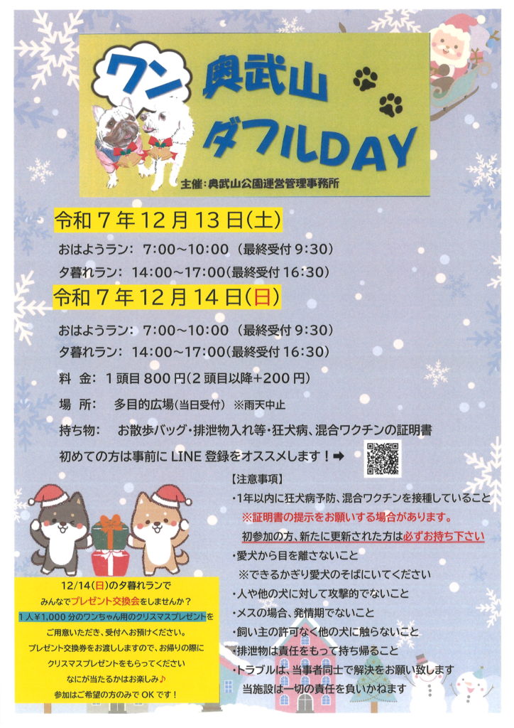 12月のワンダフルDAY(ドッグラン)が決定いたしました!