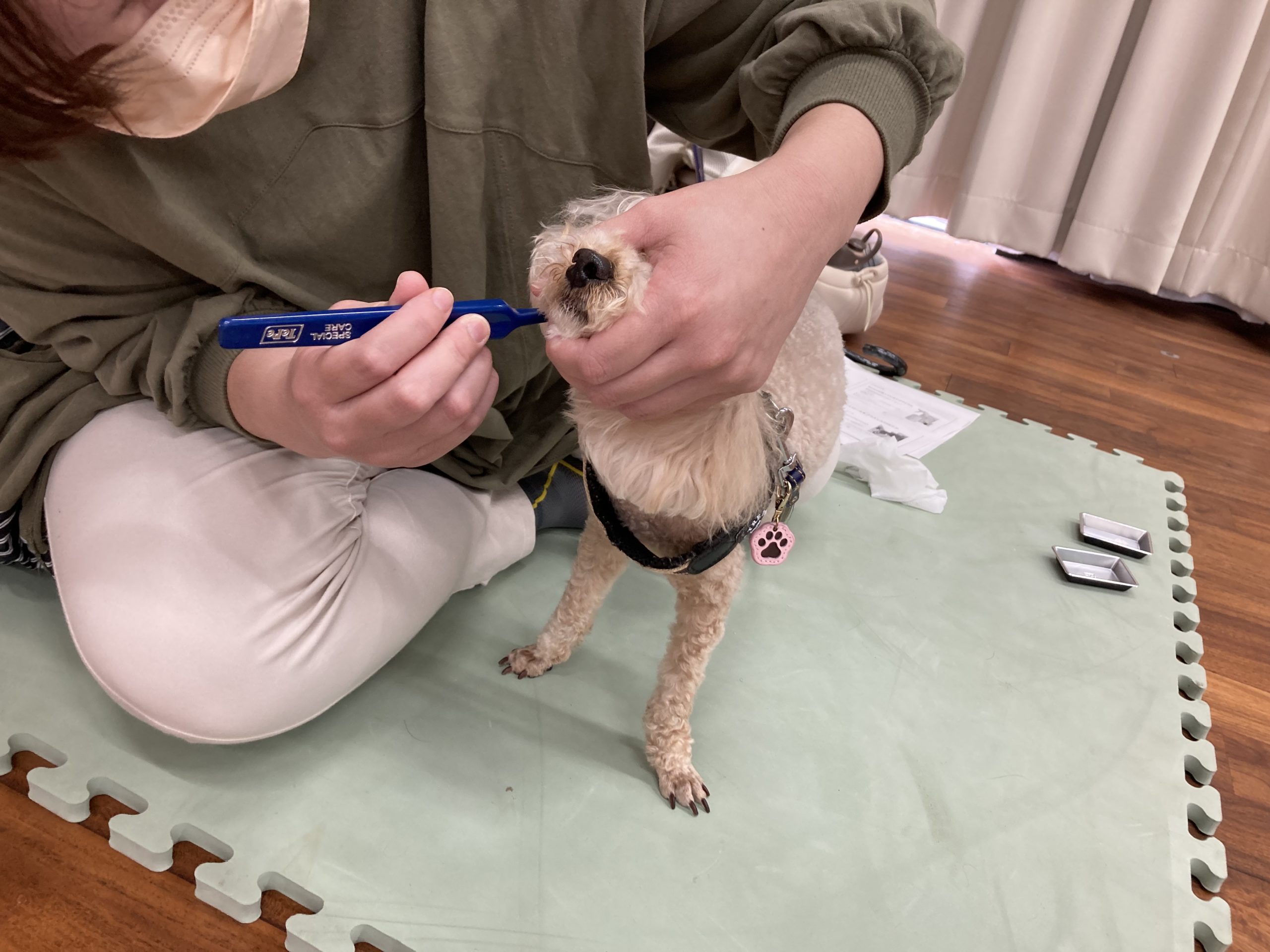 【開催の様子】愛犬のためのハミガキ講座 毎回大人気の歯磨き講座。 歯磨きを家でもやっている(やってみた)飼い主さんも多く参加されていました。 ただ、愛犬の健康維持にとって大切なことは理解しているけれど愛犬が嫌がってうまくできない方がほとんどでした。 今回の受講を機に、家でもぜひ続けてもらいたらと思います(#^^#)