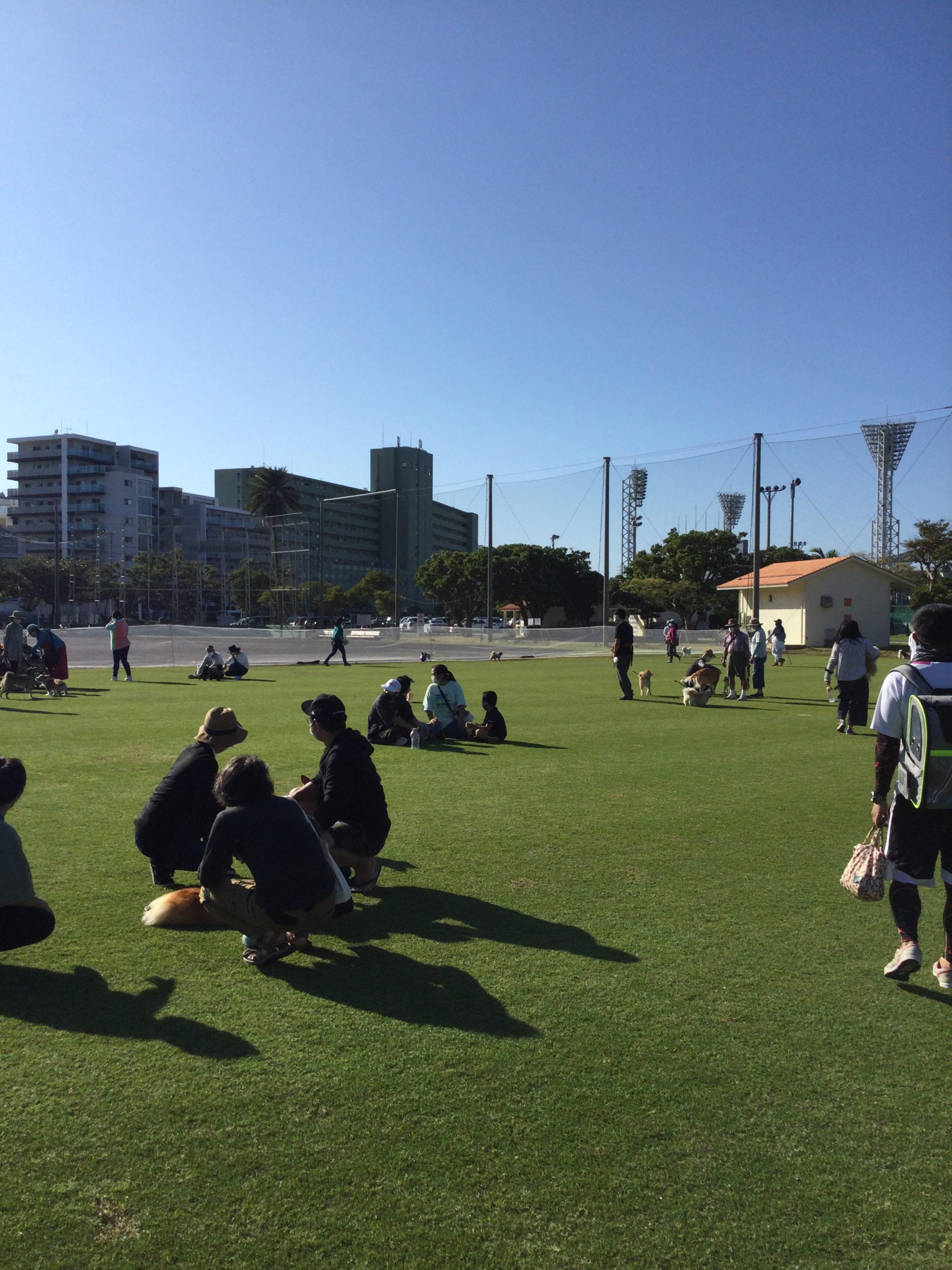 「開催の様子」11/3奥武山ワンダフルDAY🐶 今回のワンダフルDAY🐶 もう11月ですが、最初は太陽も出ていてワンちゃんたちがバテないか心配でした… が!!やはり久しぶりに会うお友達と走り回れるのがうれしいのか 広い芝生で思いっきり遊んでみんな楽しそうでした♪♪♪ 少し風もあり、心地よく過ごせたと思います☆★☆ 次回は11/21(日) 14:30~17:30 での開催です!! 変わらずコロナ対策も徹底したうえでのご参加お願いいたします。