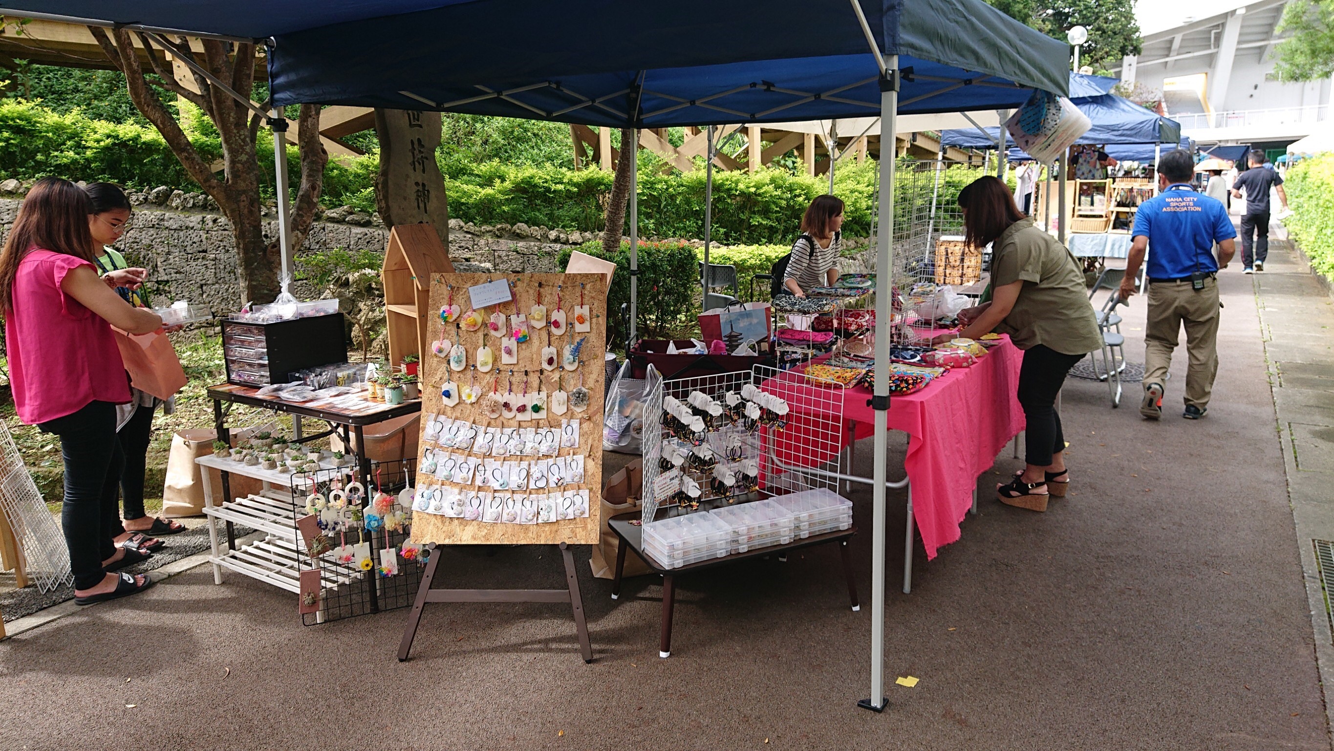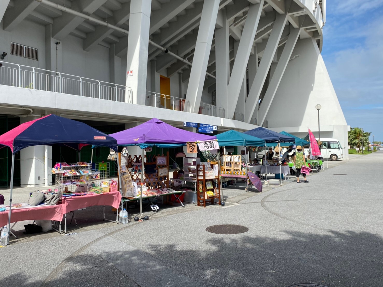 「開催の様子」奥武山手作り市 毎年恒例の手作り市!! 今年は初の試みで武道館横の並木道での開催でしたが、天気も良くたくさんの方が来場してくれました☆! 今回は手作り服や手作りアクセサリー! バルーンアートは子どもたちに大人気でしたよ♪ キッチンカーも人気で早い時間で売り切れたものもあったようです!(^^)! 手作りならでわの温かみのある雑貨類、おいしいごはん、たくさんの中から掘り出しものはGETできましたか?? ご来場してくださった皆さま 出店者の皆さまありがとうございました♪