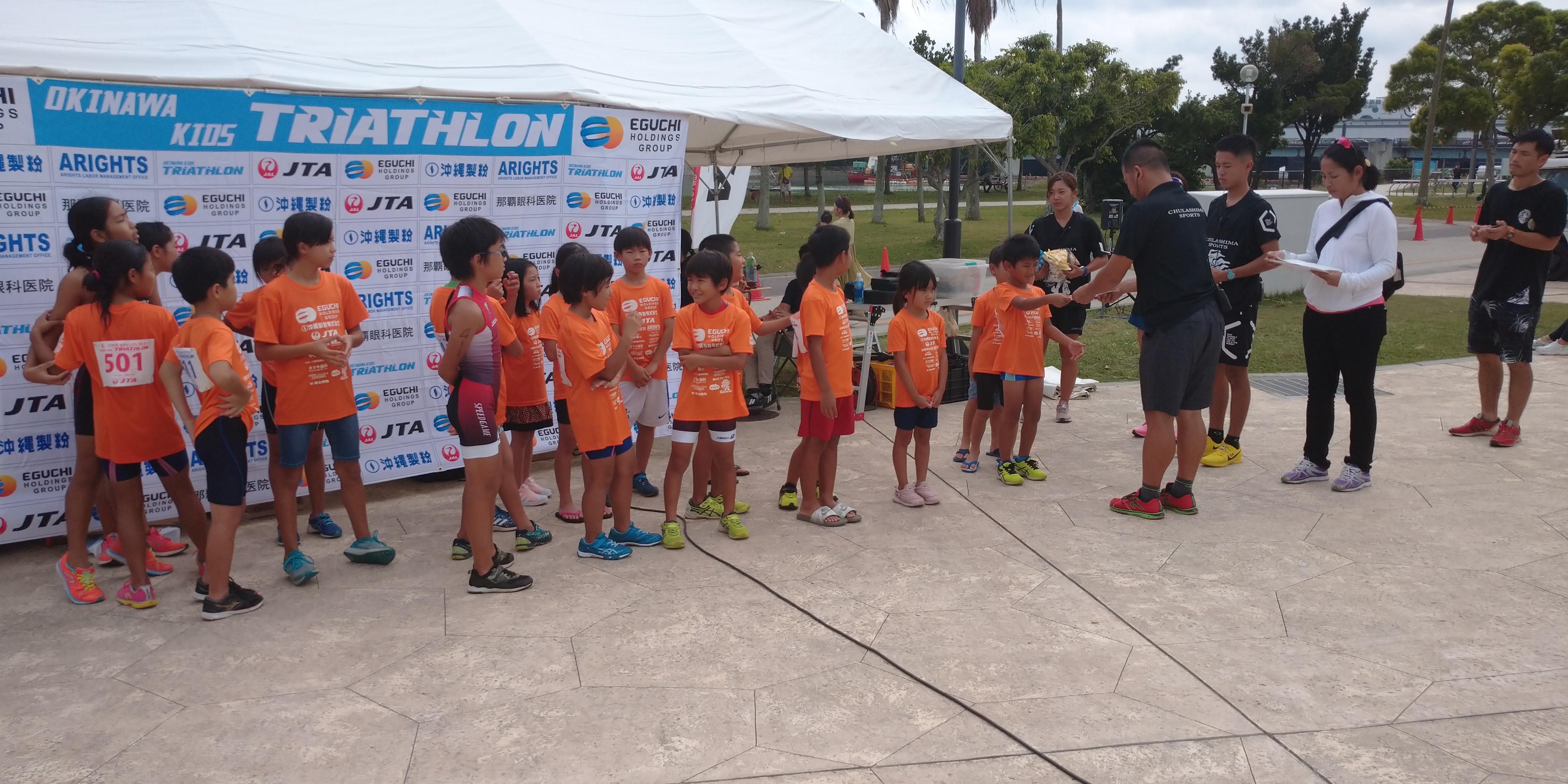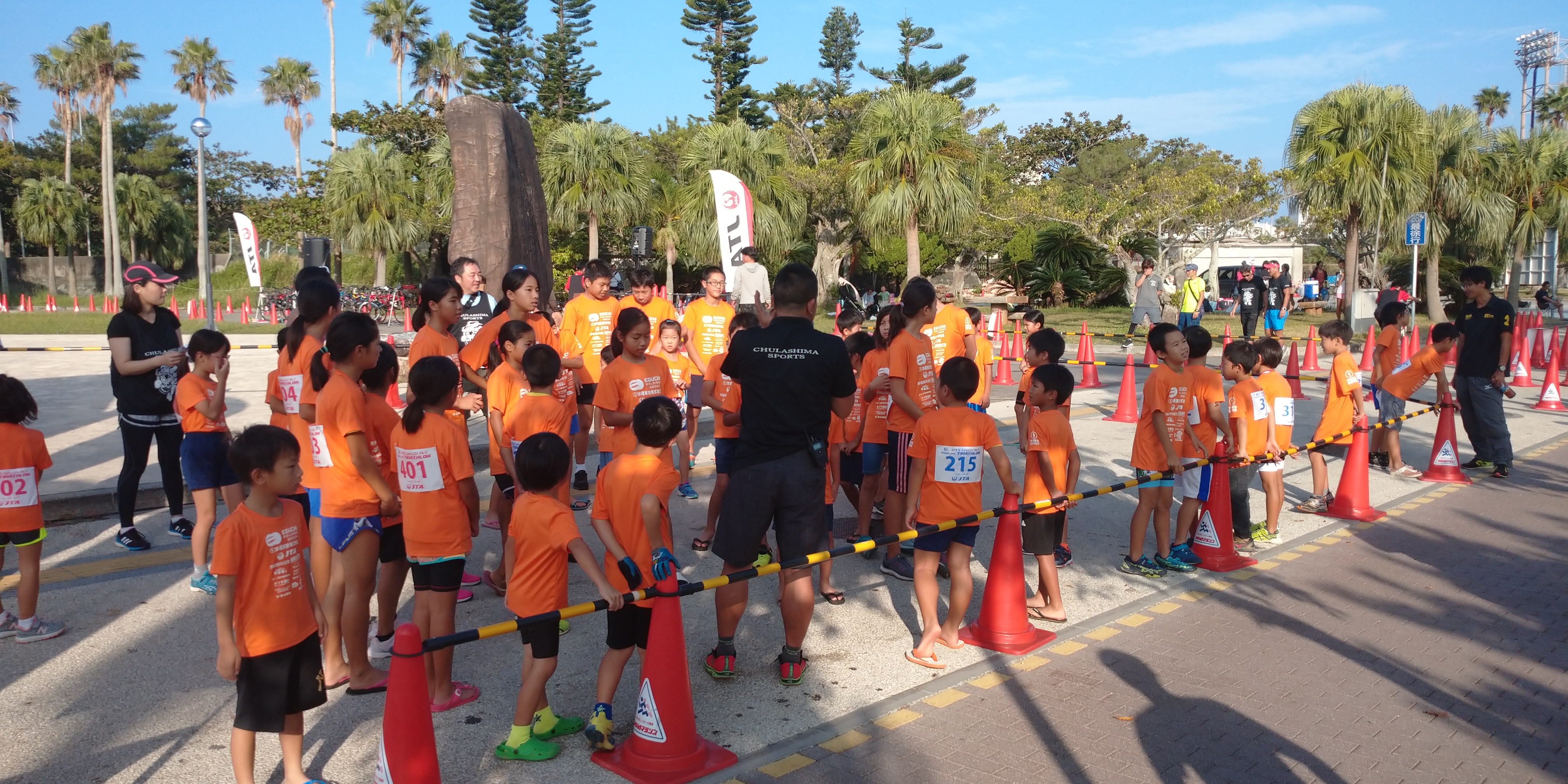 「開催の様子」沖縄キッズトライアスロンIN奥武山 去った11月3日(日)キッズトライアスロンを開催いたしました♪ 3種目(トライアスロン・デュアスロン・アクアスロン)に60名のキッズたちがエントリーし、小学校1年生~中学生の選手たちが精一杯上位をめざし競い合いました♪ 観客からも熱い声援があり、大盛り上がりをみせていましたよ~♪