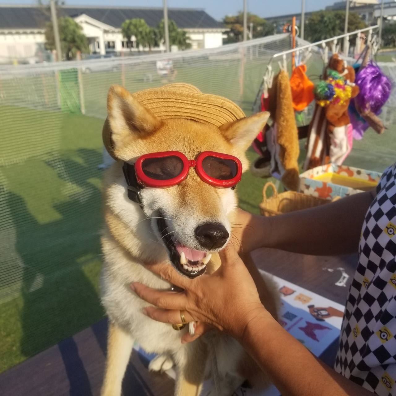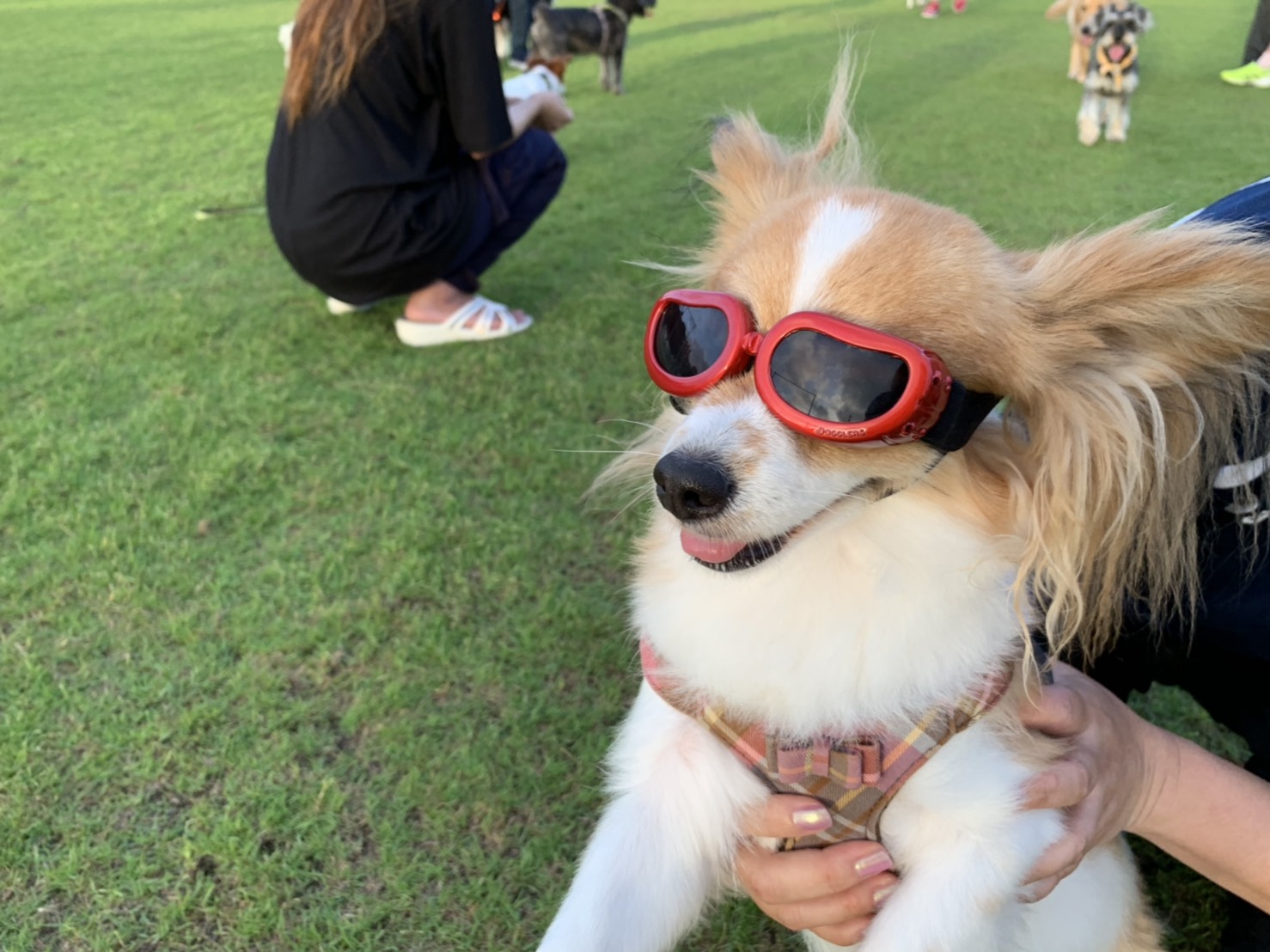 「開催の様子」第二回奥武山ワンダフルDAY🐶ナイトドッグラン 去った6月30日(日)初めての試みで、夕方からのナイトドッグランを開催いたしました。日中は、ワンコも人間も暑さでバテバテでしたが、18時からのドッグランは日も落ちてきてだいぶ涼しい中、開催出来ましたよ♪ 総勢37頭のワンコが参加してくれて、犬種もチワワから琉球犬まで様々でした♡ サングラスや被り物などでコスプレしているワンちゃんもいてすごく可愛かったです♡(#^^#) 飼い主さん同士の交流の場としても利用していただけると、公園側としても嬉しいです♪ 次回は7月13日(土)、7月28日(日)18:00~20:00開催予定です