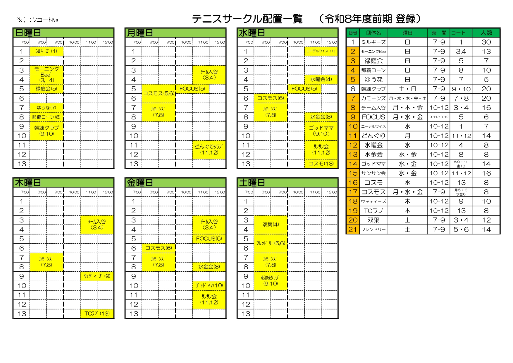 令和8年度後期庭球場サークル抽選結果について、以下のように決定いたしまた。