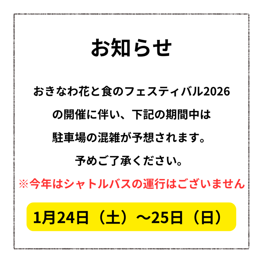 おきなわ花と食のフェスティバルに伴う駐車場の混雑のお知らせ