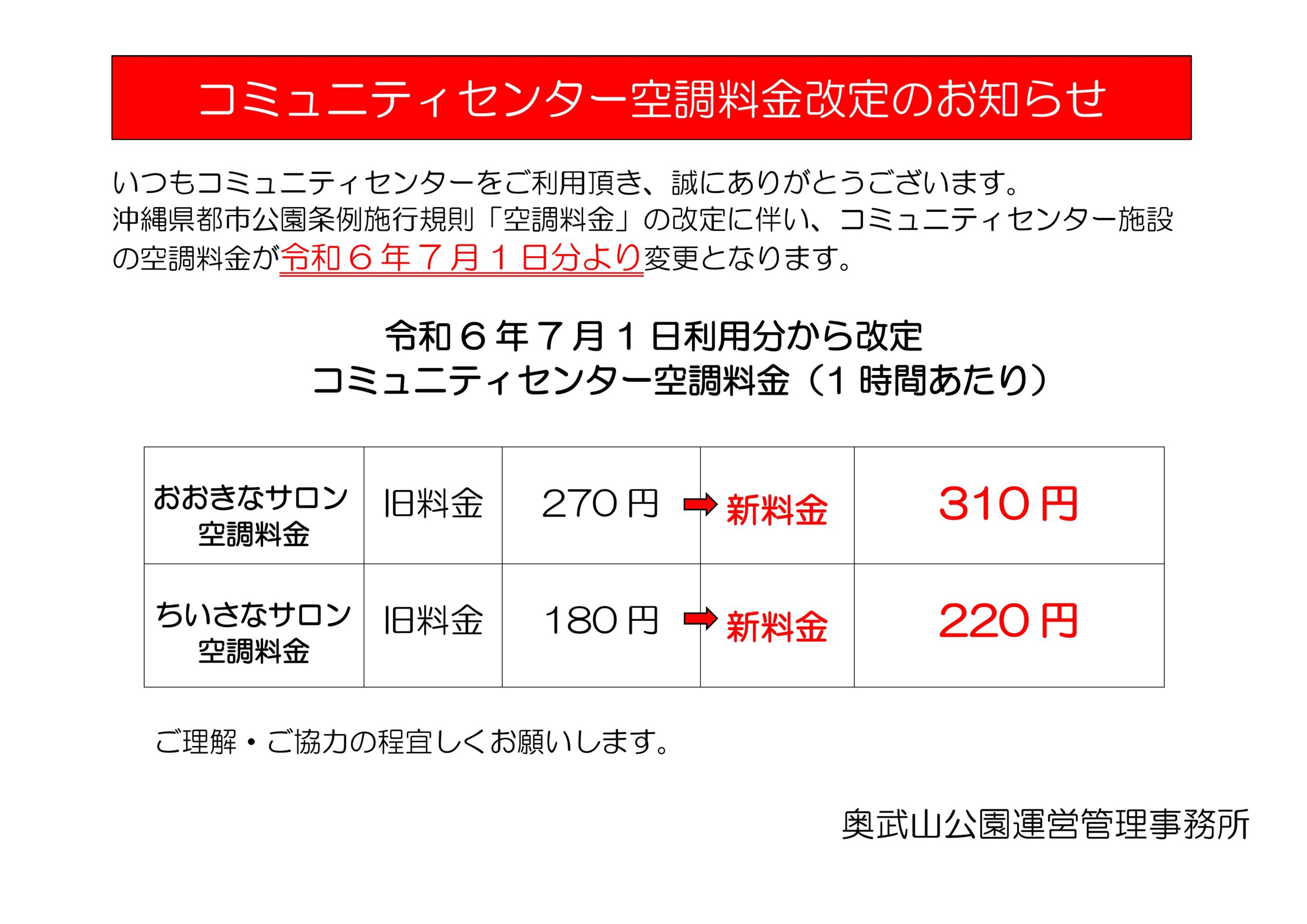 コミュニティセンター空調料金改定のお知らせ