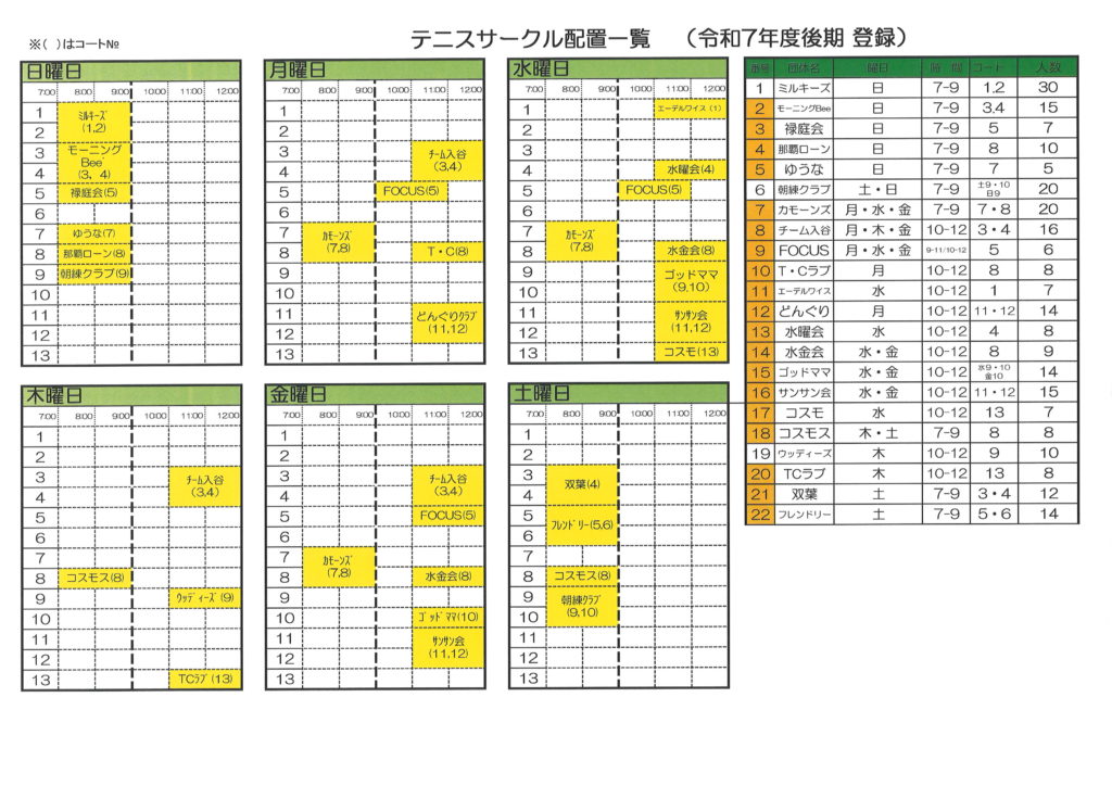 令和7年度後期庭球場サークル抽選結果