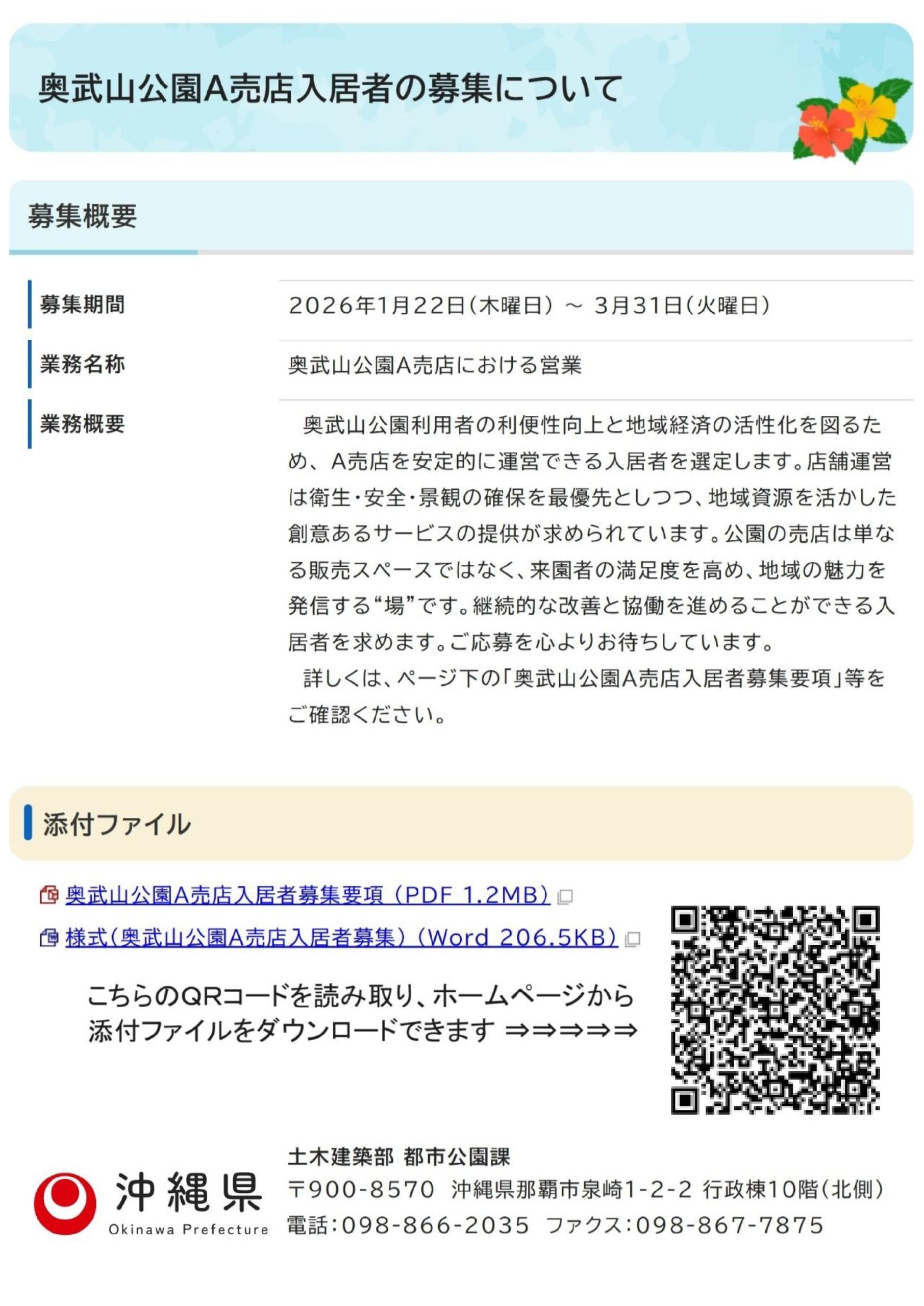 奥武山公園A売店入居者の募集について|沖縄県公式ホームページ