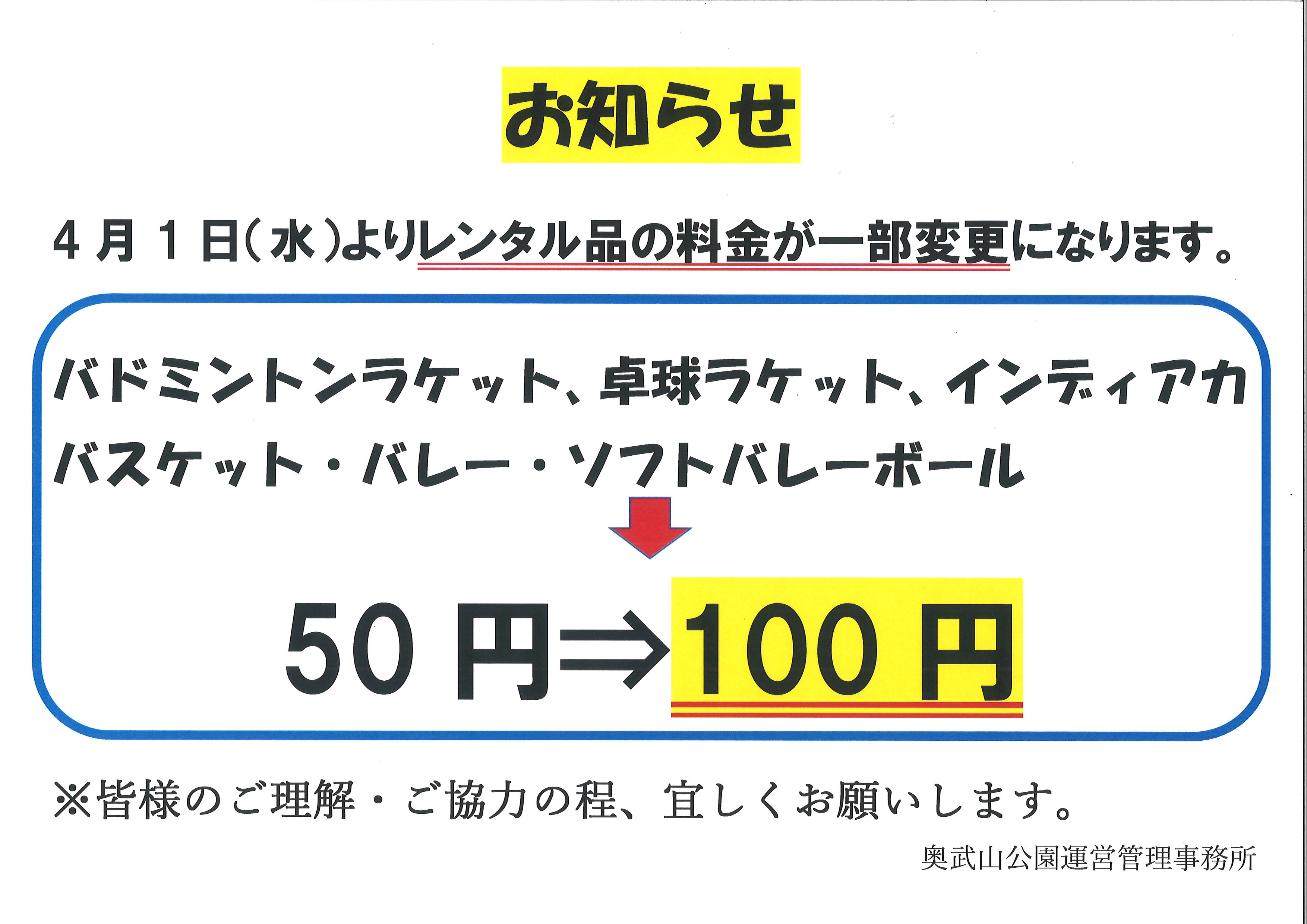 4月1日(水)よりレンタル品、料金一部変更のお知らせ