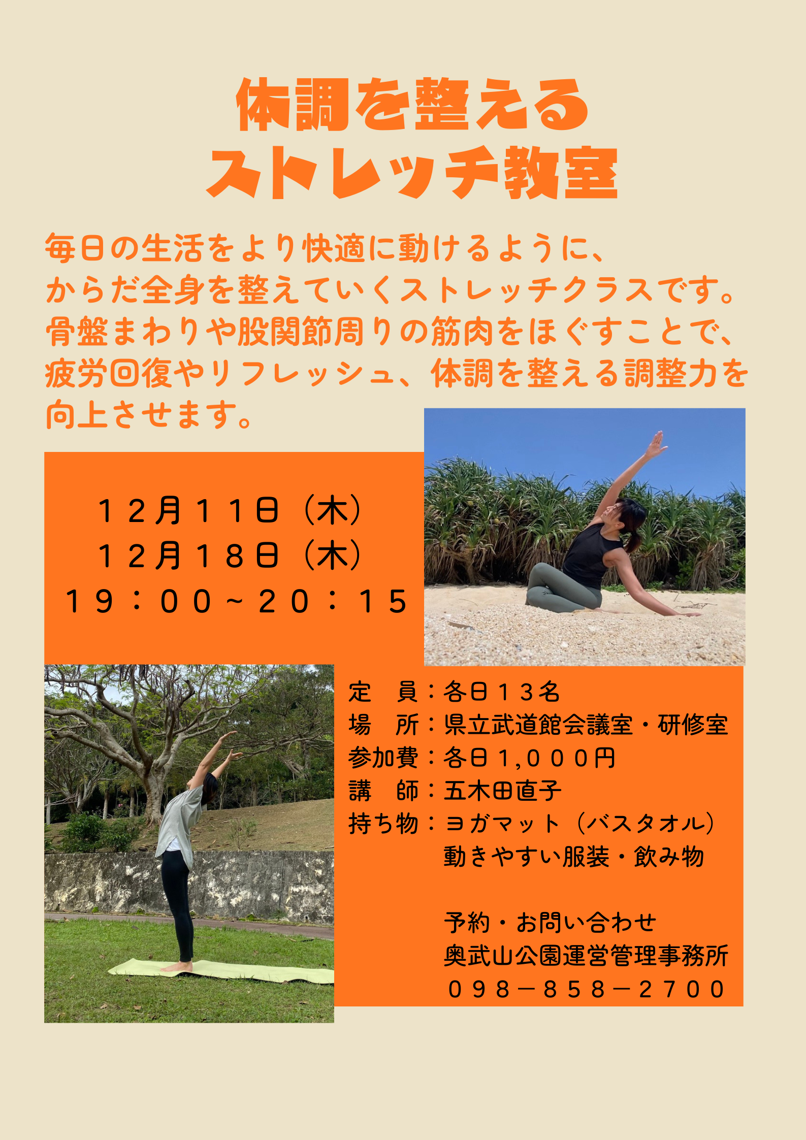 毎日の生活をより快適に動けるように、からだ全身を整えていくストレッチクラスです。